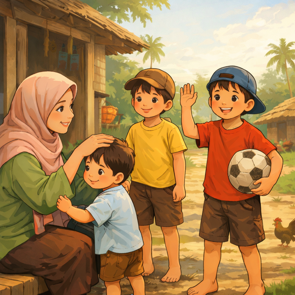 “Buk, kami bal-balan ya,” kata anak- anak saya sepulang dari langgar. Sarung mereka masih diselempangkan di bahu, dengan mengenakan peci sholat. Sekilas mirip Si Unyil.