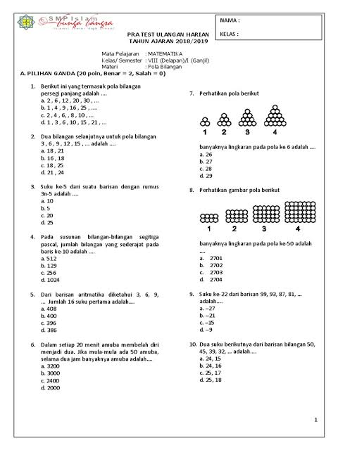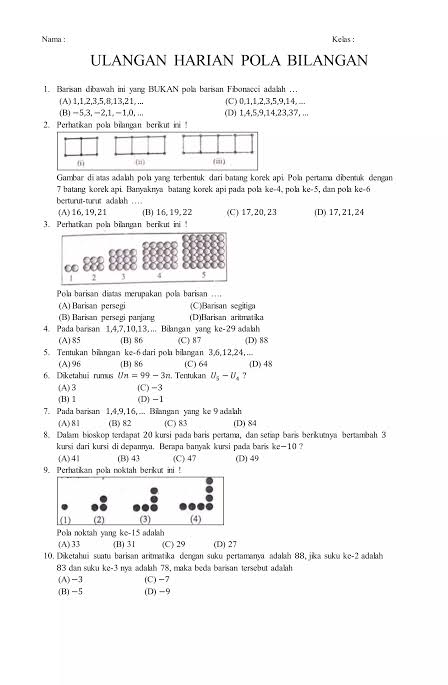 Untuk lebih memahami masalah pola bilangan, barisan dan deret aritmatika, kerjakan soal berikut ini: