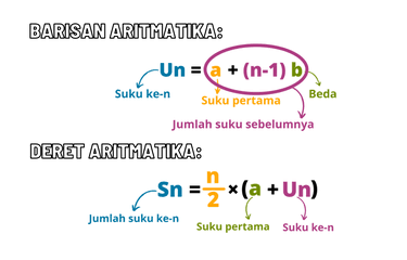 · Barisan Aritmatika: Susunan bilangan yang selisih antara dua suku berurutan selalu tetap. Selisih ini disebut beda (b).