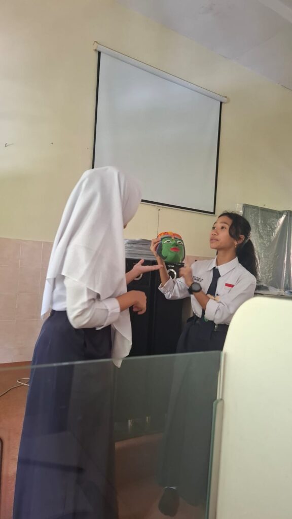 Di depan ruang- ruang ujian siswa demikian sibuk. Ada yang menyanyikan lagu-lagu wajib, menghafalkan teks dialog, orasi, deklamasi, termasuk juga presentasi tentang pembuatan topeng Malangan.