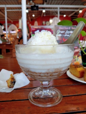 “Apa ya? ” tanya saya bingung. Asli. Saya tidak mengerti makanan apa yang disajikan kedai ini.