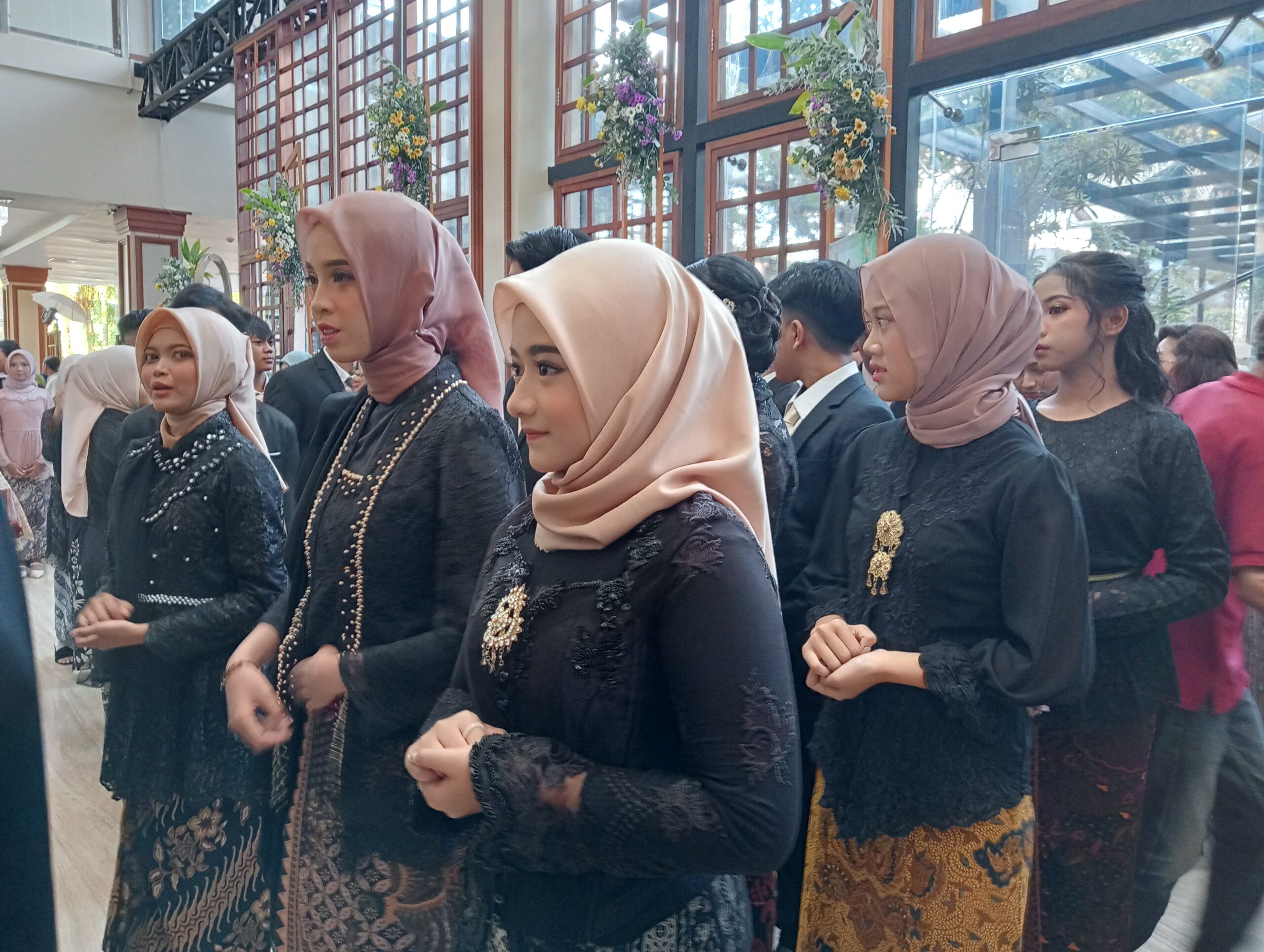 Siswa, guru maupun orang tua memenuhi jalan di luar ballroom. Semua tampak gembira, terutama para siswa. Tentu saja , setelah tiga tahun mereka belajar di Bintaraloka sekolah tercinta, kini tiba saatnya mereka harus diserahkan kembali oleh sekolah kepada orang tua.