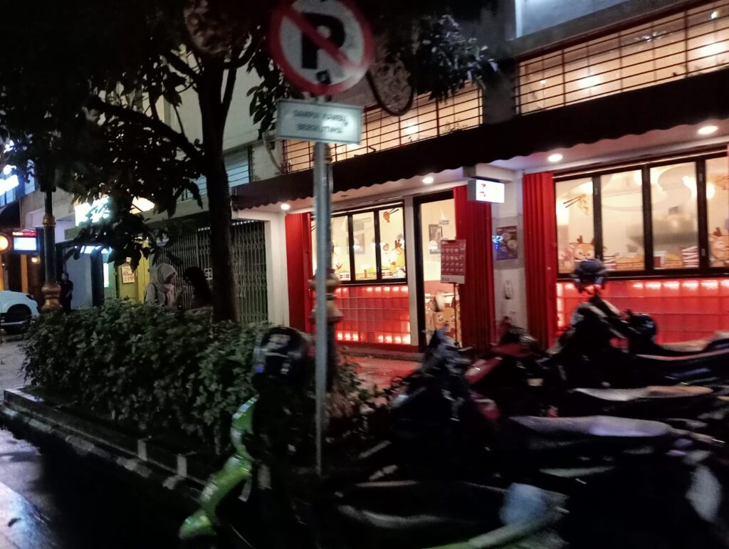 Lampu- lampu pertokoan dan cafe yang berwarna-warni membuat suasana terasa meriah. Semakin malam pastinya pengunjung akan semakin banyak.