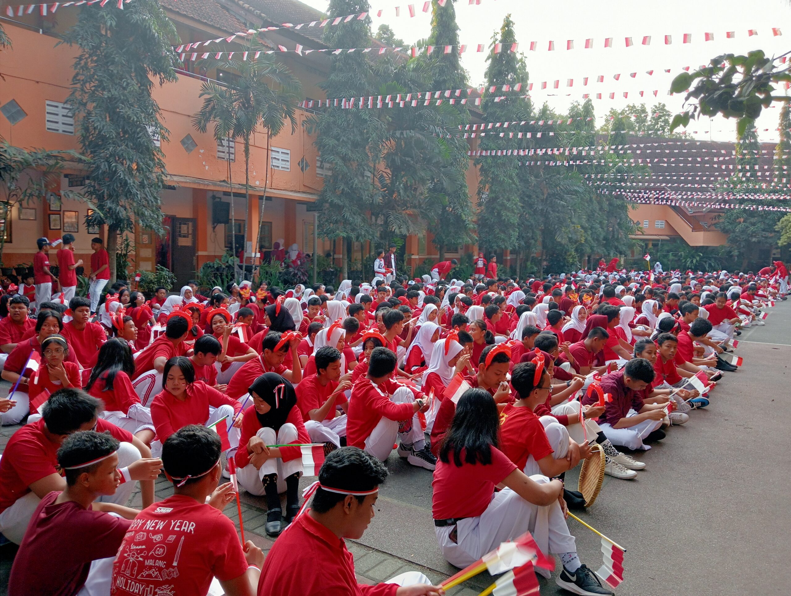 Ada senyum di mana-mana. Dengan melambai-lambaikan bendera merah putih kecil siswa terus berjalan dengan didampingi para guru yang bertugas. Beberapa kelas melengkapi penampilan hari itu dengan aksesoris merah putih, seperti bando, pita atau yang lain.