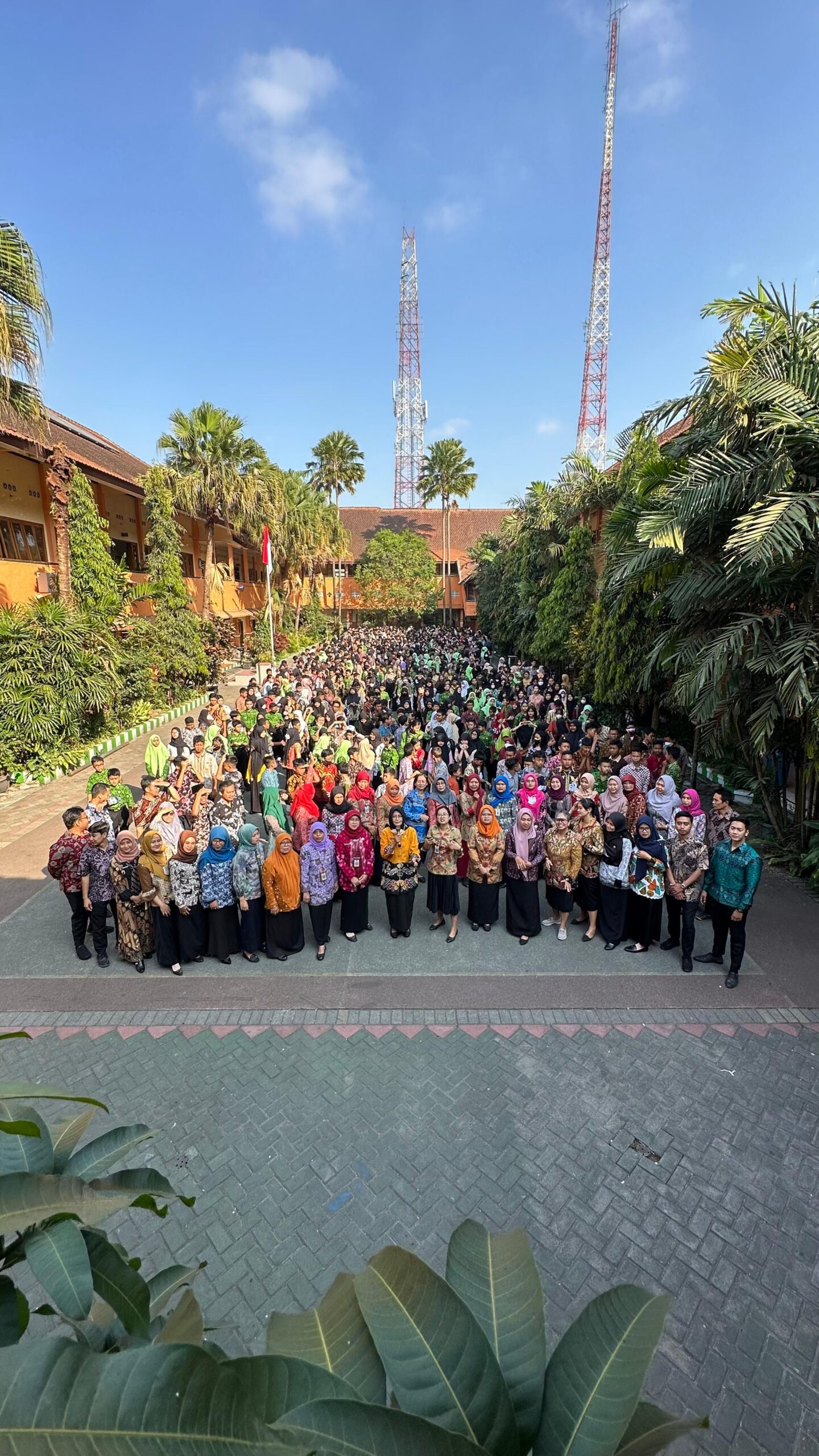 Ada yang istimewa di Bintaraloka Senin pagi itu. Pakaian batik berwarna-warni dikenakan hampir seluruh warga. Warna hijau, kuning, coklat, merah membuat suasana upacara bendera begitu ceria.