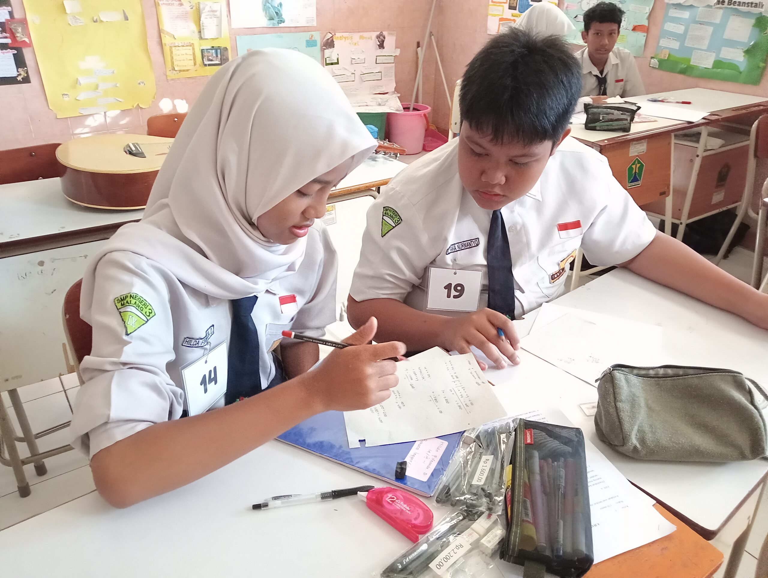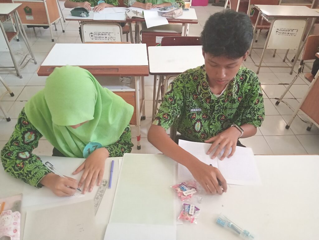 Siswa mengerjakan ujian praktik matematika, dokumentasi pribadi