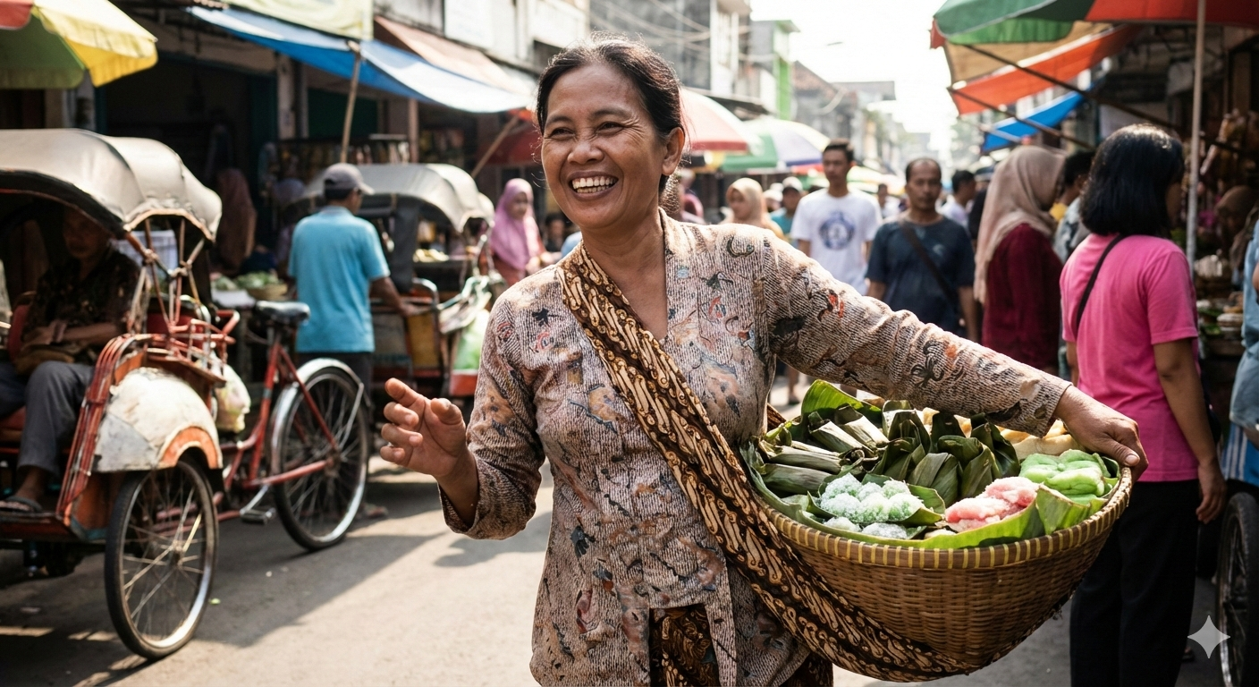 Dengan cekatan Mbak Sur mengangkat dagangannya.