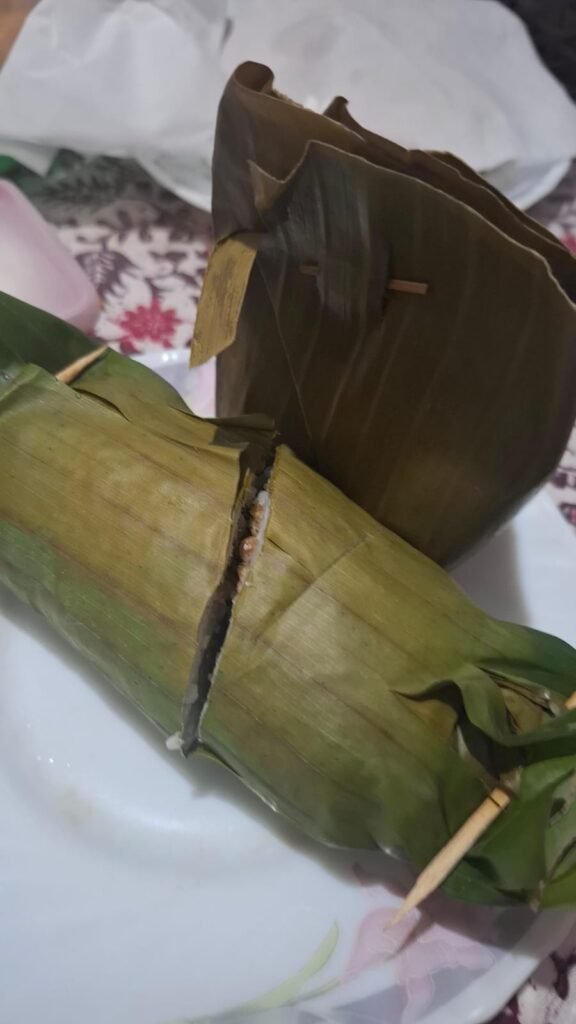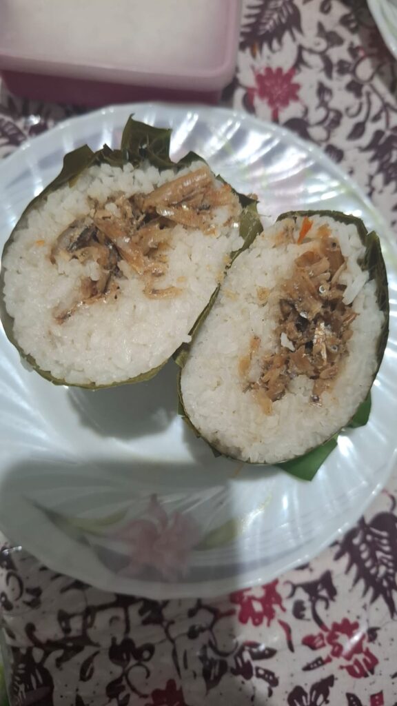Sekilas seperti lemper tampilannya. Rasanya sedap, pedas, enak dinikmati hangat- hangat.