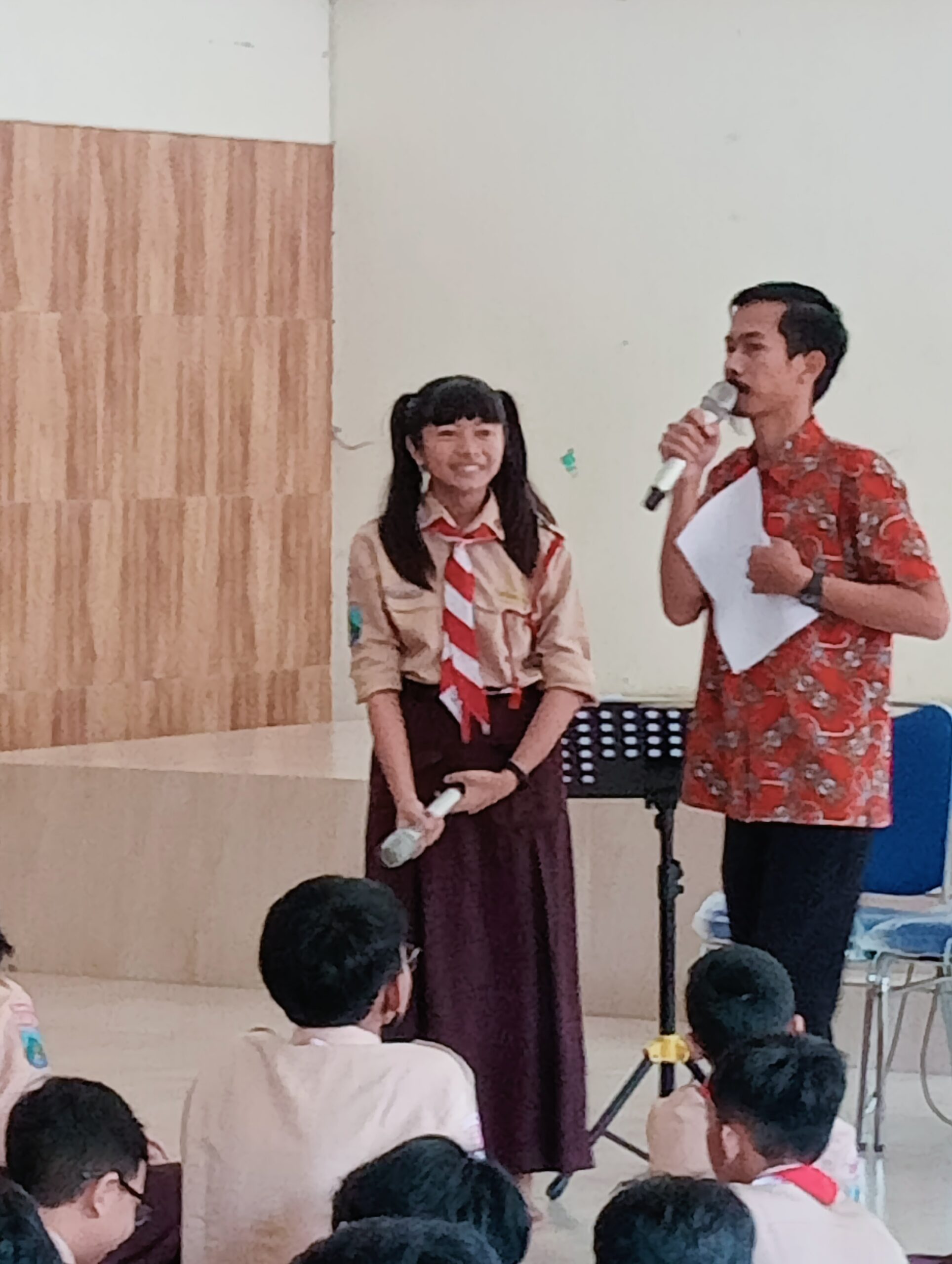 Setelah dilakukan komunikasi ternyata ada satu orang yang bisa hadir sebagai narasumber. Alhasil pagi itu ada dua personil grup musik yang hadir untuk memberikan materi, yaitu guru seni budaya dan satu orang temannya.