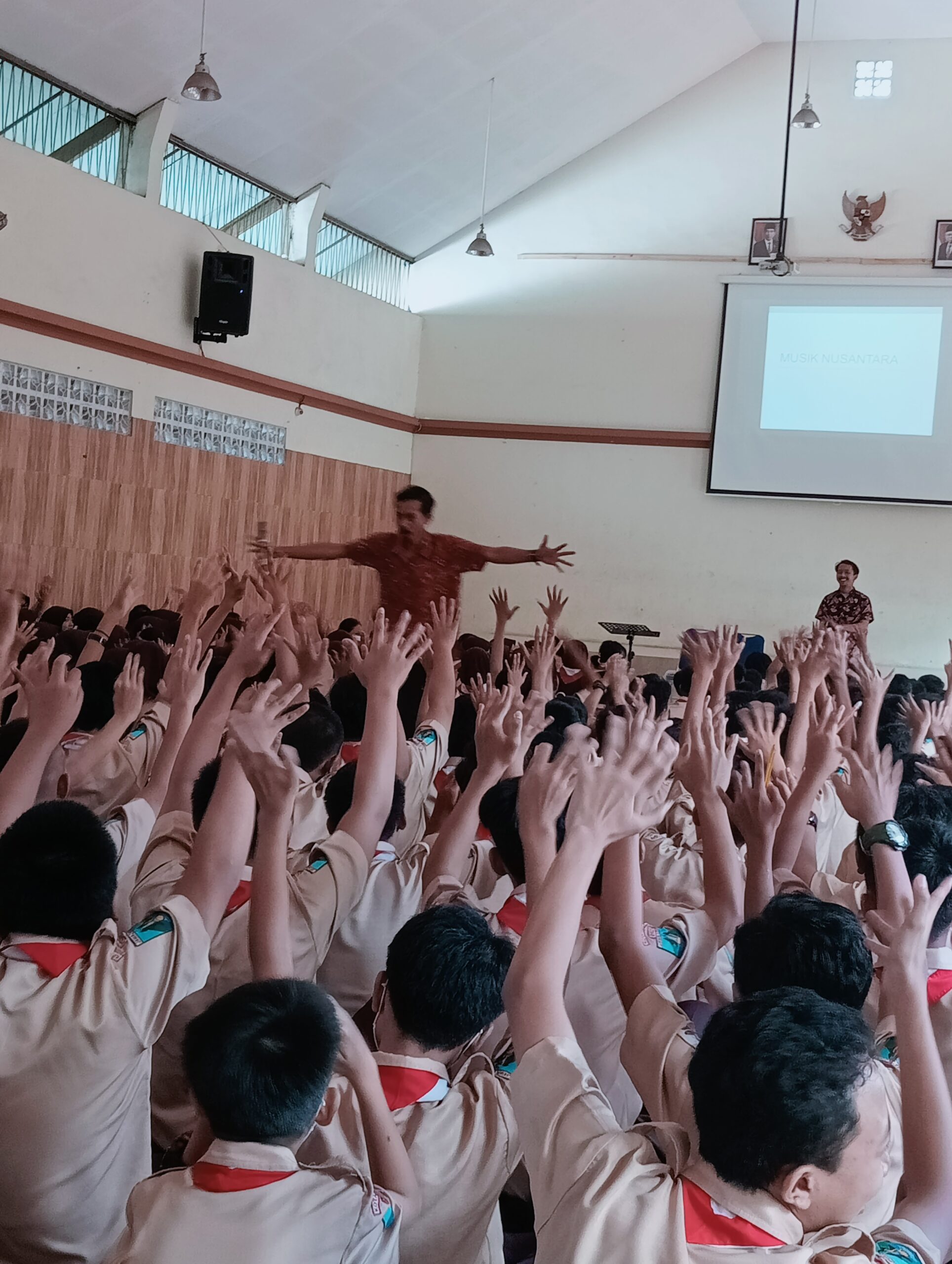 Kedatangan Pak Vigil dan Kak Eka pagi ini adalah dalam rangka pemberian materi tentang bagaimana cara membuat aransemen musik Nusantara pada siswa kelas tujuh.