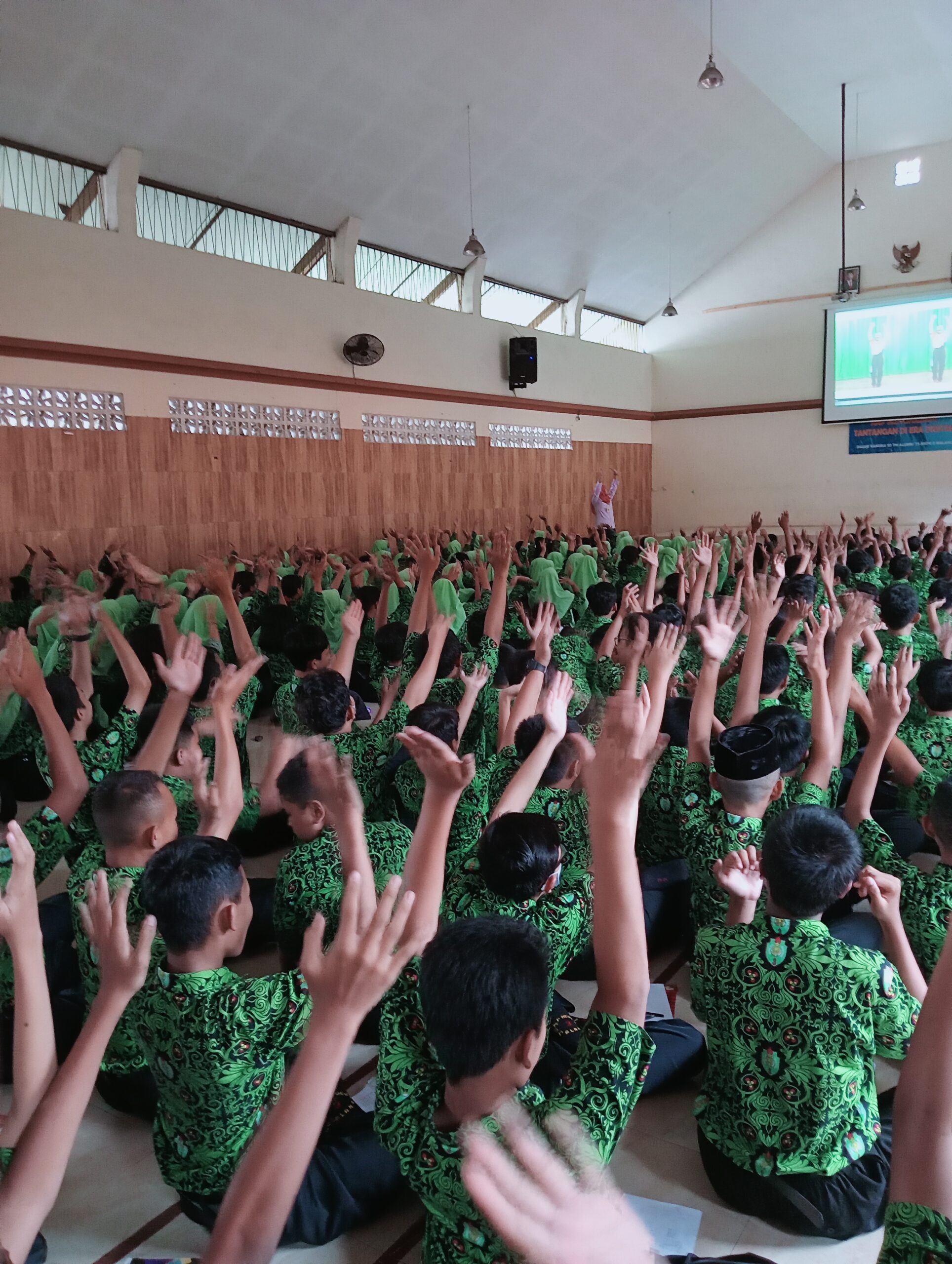 Wajah wajah ceria tampak di aula siang itu. Lagu Naik Becak, Buanglah Sampah dibawakan siswa dengan penuh semangat. Ditambah gerak pula dengan panduan Ibu Ami, Ibu Novi dan Ibu Dani.