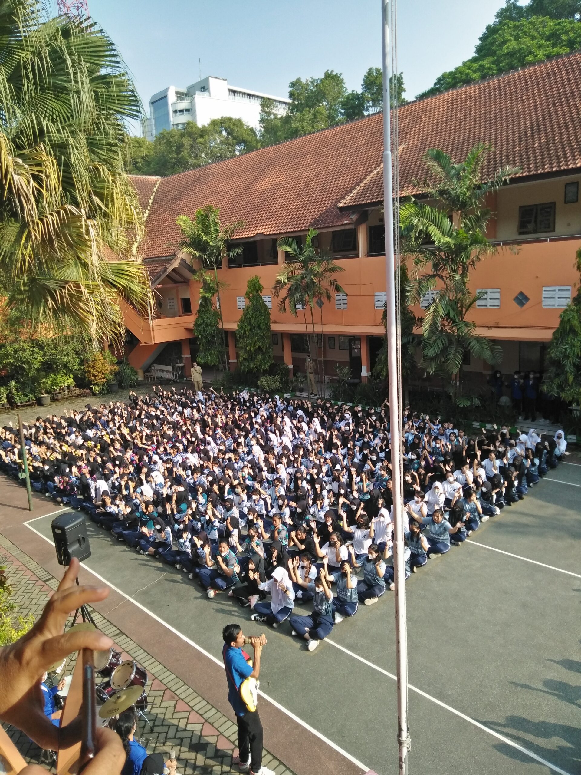 Dua lagu selesai. Yang menonton semakin banyak. Beberapa menyempatkan diri memesan lontong bahkan mungkin juga ngopi di Teras Heritage yang tidak jauh dari situ.