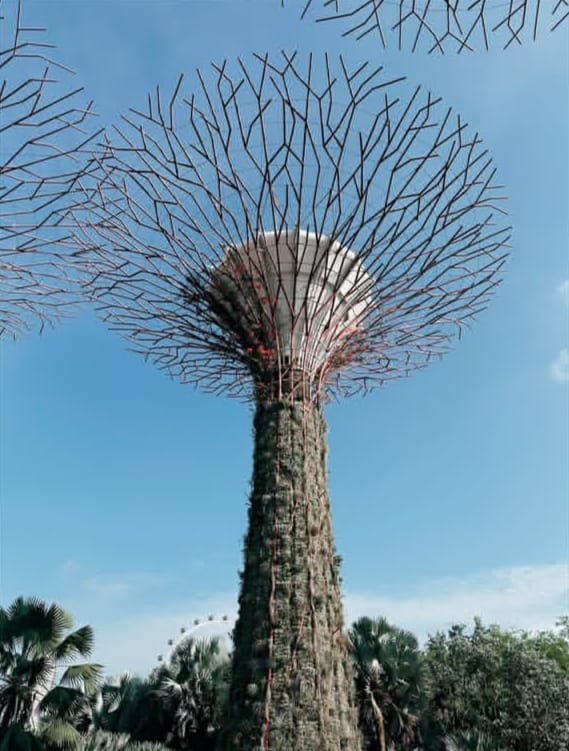 Di sekelilingnya taman hijau Gardens by the Bay menawarkan pemandangan yang tak kalah menakjubkan. Supertree Grove, pohon-pohon baja raksasa yang dililit tanaman hidup berdiri perkasa dengan dihiasi kicauan burung di sekitarnya. Banyak orang yang berolahraga raga atau berjalan- jalan seperti yang kami lakukan pagi itu.