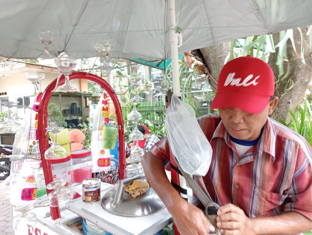 Luar biasa. Berarti sudah 39 tahun beliau menekuni usaha berjualan es puter ini.
