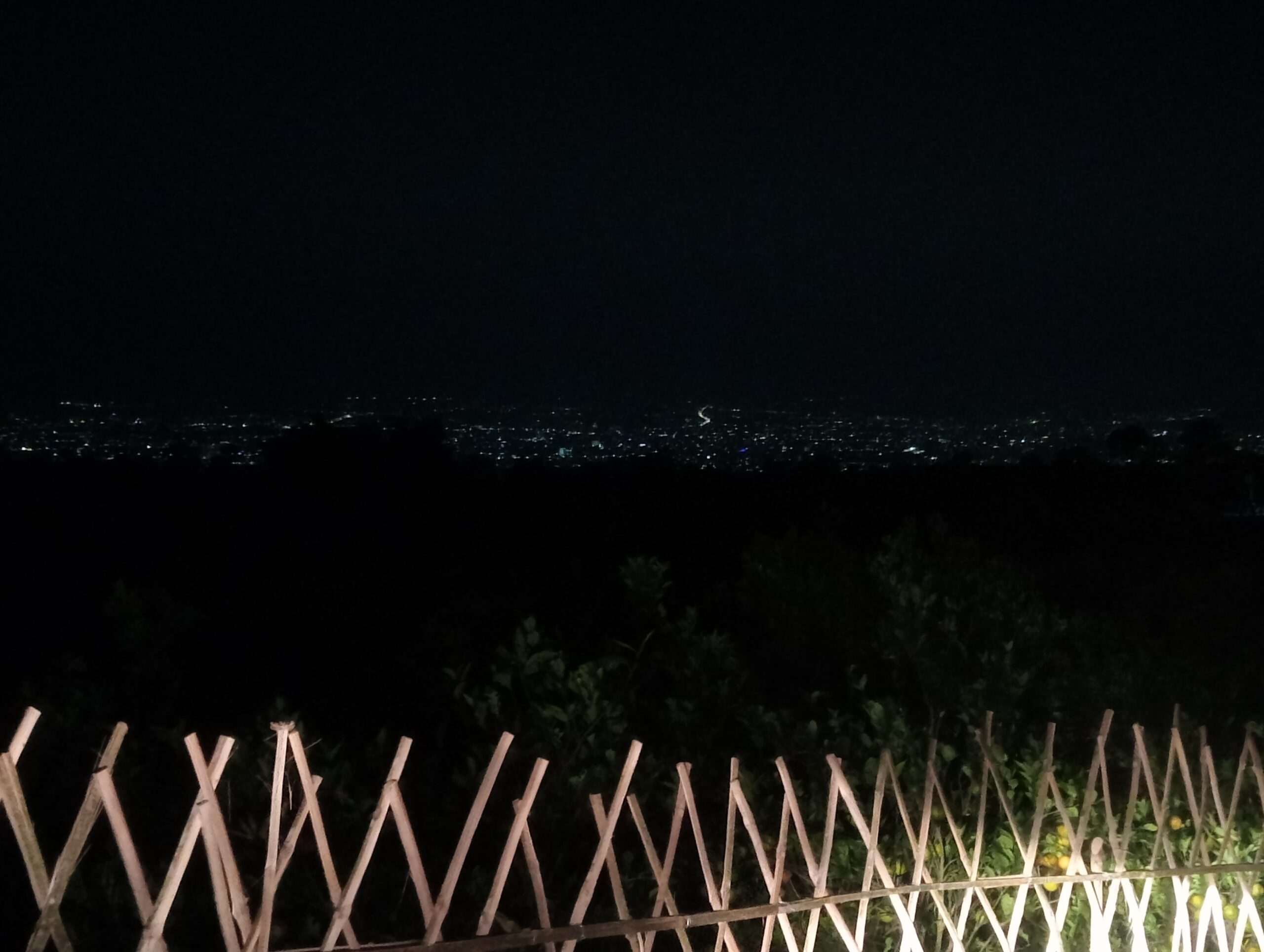 Berfoto dengan latar kelap-kelip kota Malang di malam hari, dokumentasi pribadi