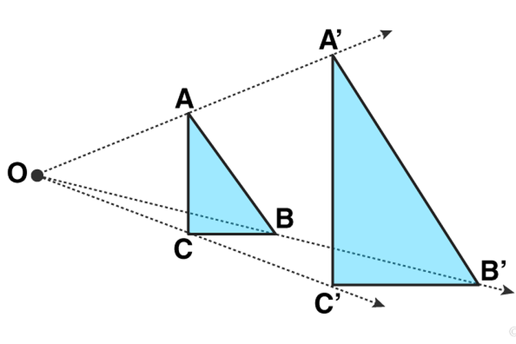 Dari ilustrasi di atas, senter itu adalah pusat dilatasinya.